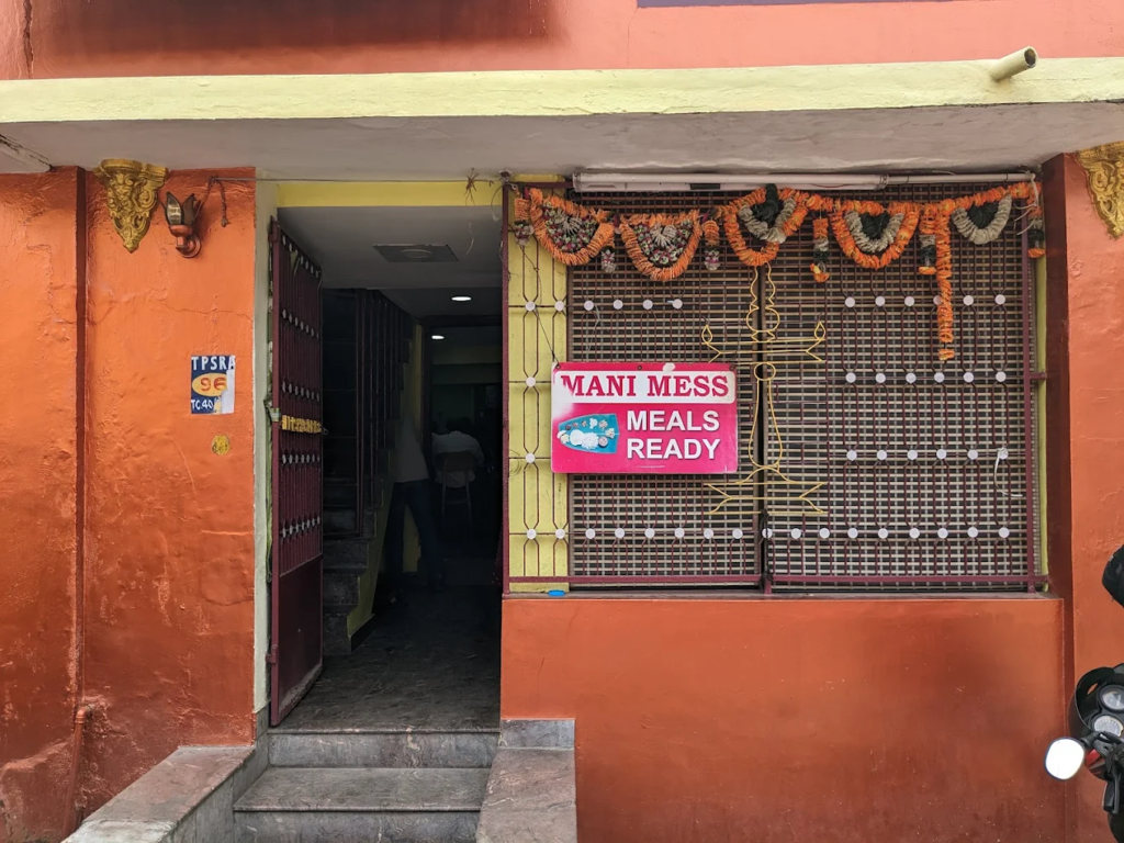 Hidden away in the narrow lanes of 3rd Puthen Street (near the Manacaud/Fort area), Mani Mess is a secret that locals guard jealously. This isn’t a “restaurant” in the commercial sense; it feels exactly like walking into an old-fashioned dining room.